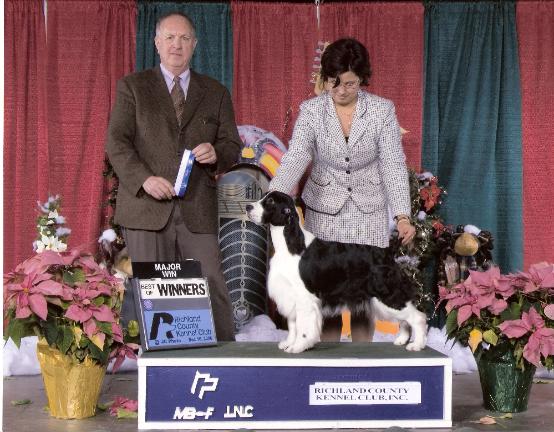 | Awards WB 1 point- to finish- 2/28/07 Greater Panama City Dog Fanciers Assn Judge Mr. Jerry M. Watson WB, BOS 2 points- 2/24/07 Ochlockonee River KC of Florida, Inc. Judge Mr. Brian Meyer WB, BOS 4 point major- 1/21/07 Pasco Florida KC Judge Mr. Jon R. Cole WB, BOW 4 point major- 1/20/07 Clearwater KC Judge Mr. Robert J. Moore WB, BOW 4 point major- 12/16/07 Richland County KC Judge Mr. Frank J. Washabaugh WB, Best of Breed 1 point- 12/01/2006 Gateway Sporting Dog Assn. Judge Mrs. Patricia V. Trotter WB, BOW, BOS 1 point- 11/05/06 Tri-State KC, Inc. Judge Mrs. Susan St. John Brown (And many Reserves along the way!) |